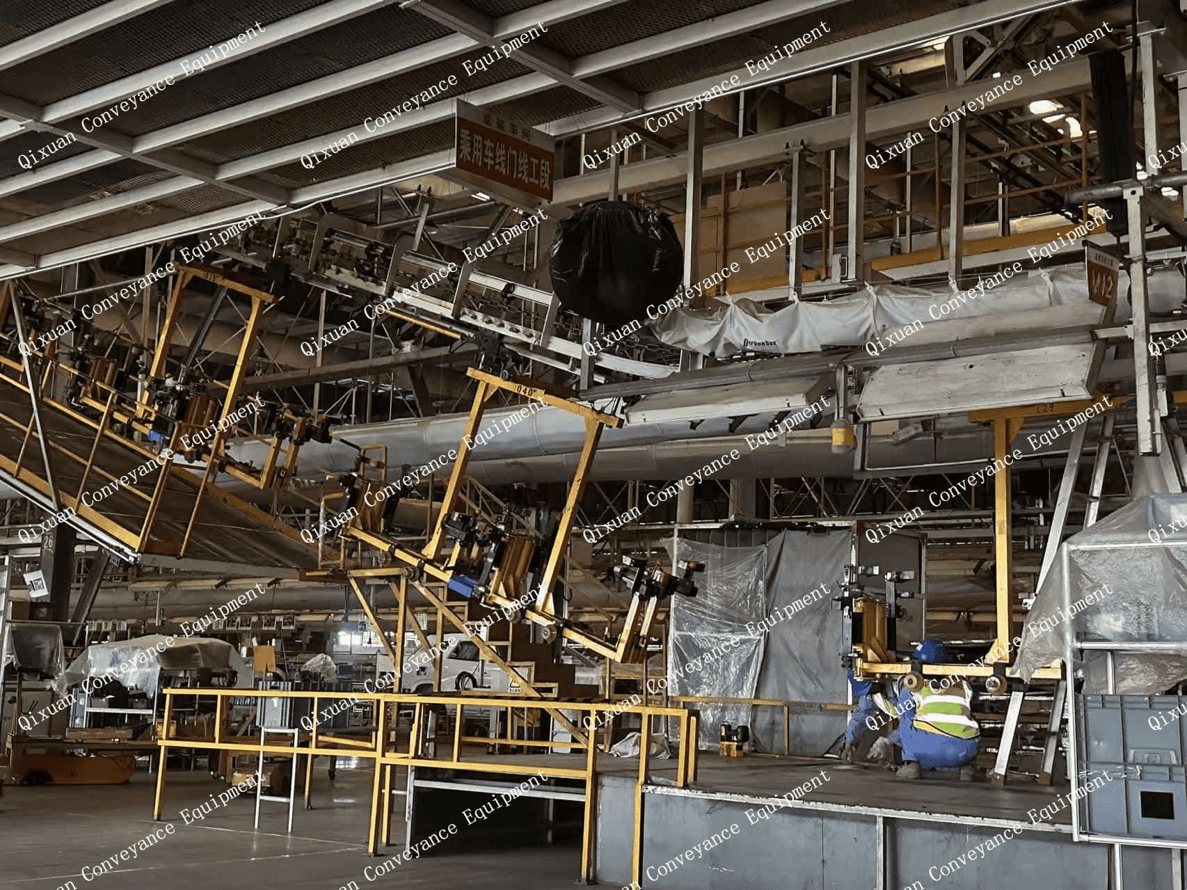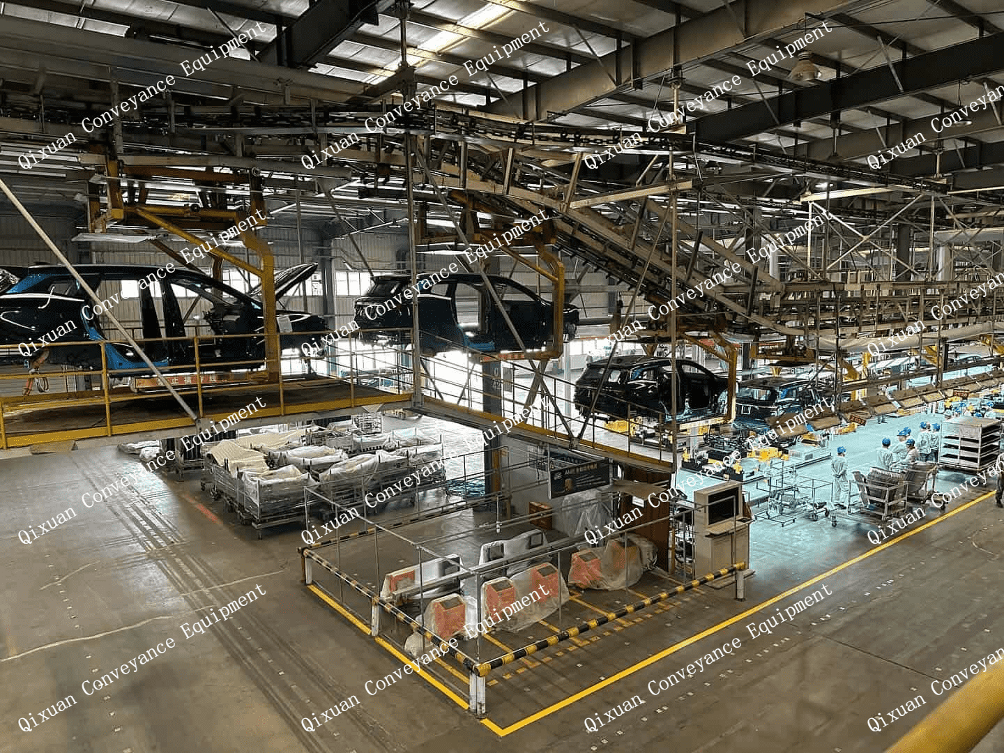 The Power and Free Overhead Conveyor System is a highly adaptable and sophisticated material handling solution engineered for precise and efficient transportation within complex manufacturing and logistics environments. Utilizing a chain-driven mechanism combined with a controlled 'power' and 'free' linkage system, it enables the independent movement and stopping of carriers at designated workstations, enabling seamless load routing and station processing. This system's overhead configuration optimizes floor space utilization, reduces congestion, and enhances operational safety. Designed for high durability and minimal maintenance, the Power and Free Conveyor offers customizable modularity to accommodate various load capacities, speeds, and configuration complexities. Its reliable performance and flexible operation significantly improve workflow efficiency, throughput, and process automation in industries such as automotive, electronics, pharmaceuticals, and general manufacturing.