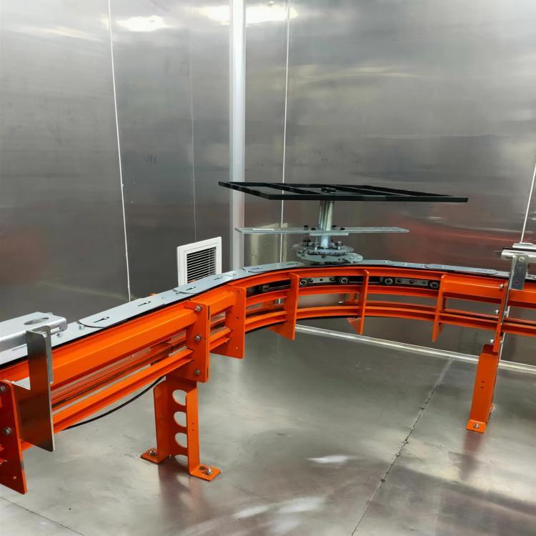 •The reliable dolly derailment system combines the flexibility of an overhead conveyor with the stability of a skid-mounted conveyor system.